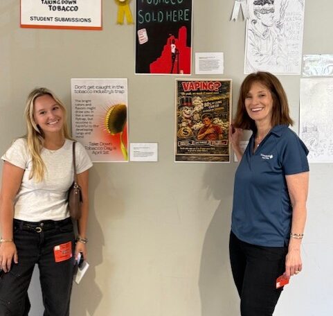 A highlight across both campuses was the Student Art Contest, where teens created bold pieces exposing industry manipulation and the harms of nicotine. First place was awarded to Emily Beebe from Capistrano Valley High School, and second place went to Revan Reynard from San Clemente High School. Winning artwork was displayed prominently on campus, extending the impact well beyond each school’s event day.
