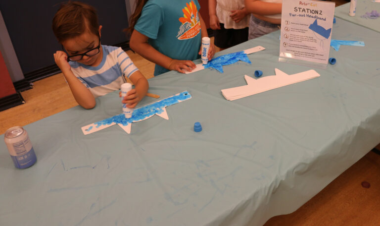 All summer long, CUSD Food & Nutrition Services and the San Juan Capistrano Library have been offering free lunch and fun activities during the week for children and families. Tuesday’s edition had a special guest join in the fun- Pete the Cat. The coolest cat around took pictures with the kids, and hosted a special arts and crafts activity, where they could make their own far out headband and a groovy button craft.