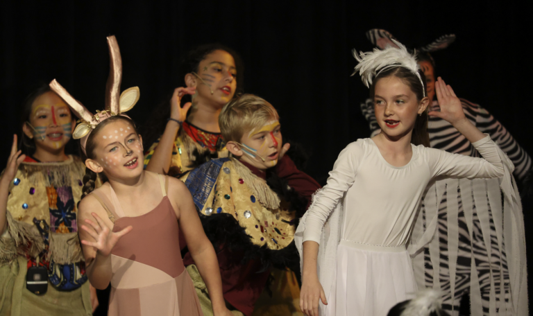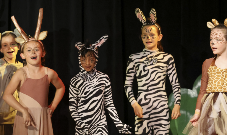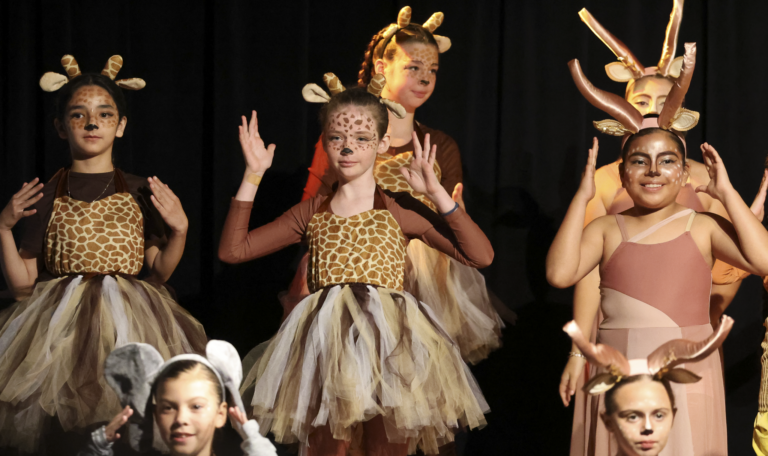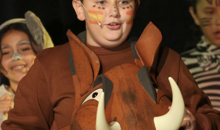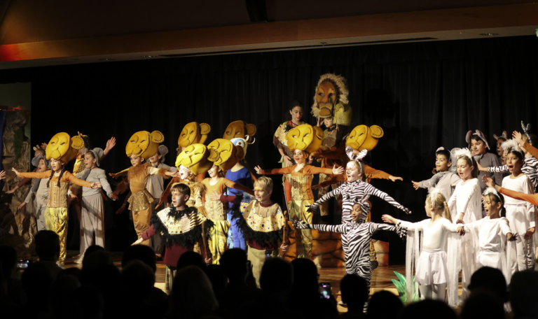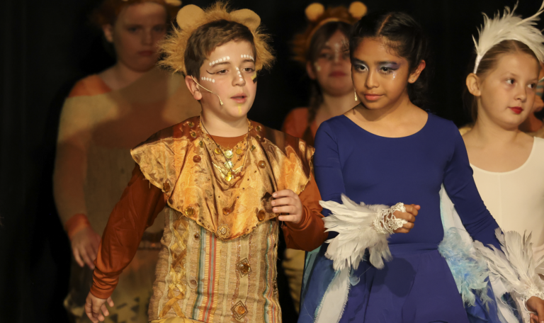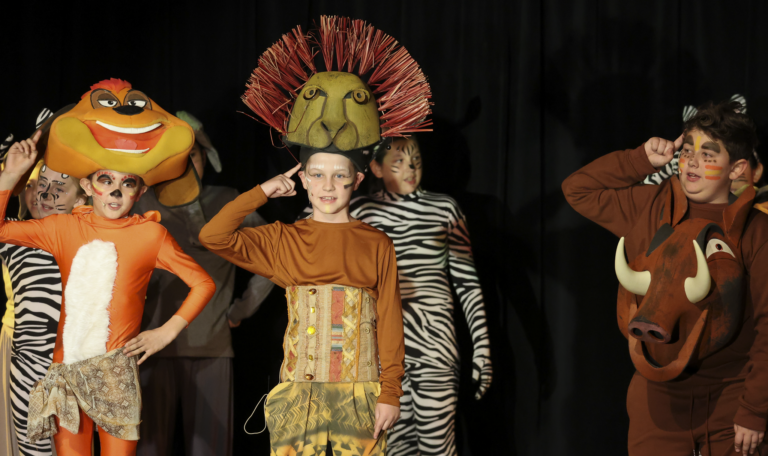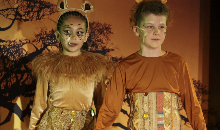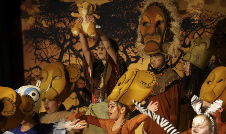 Students auditioned and were cast in roles ranging from Simba and Nala to hyenas, giraffes, and members of the Pride Lands ensemble. After school and during rehearsals, the young performers practiced their lines, perfected choreography, and learned the art of stage presence.